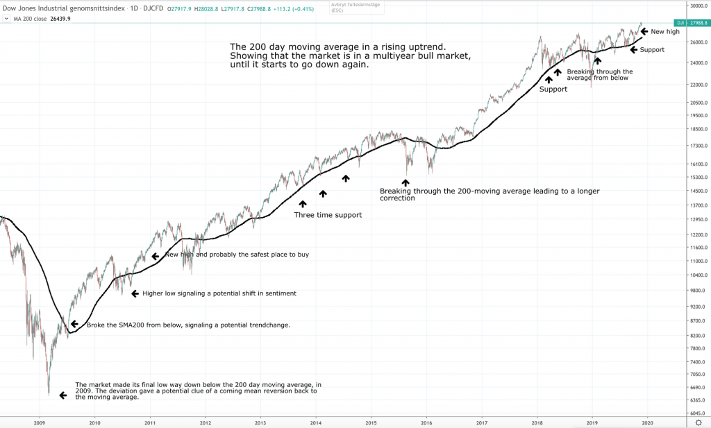For swingtraders like me a commonly used moving average is the 200 day moving average. Below is an example of how a swing trader can use the 200 day moving average, which I have written an earlier article on here.