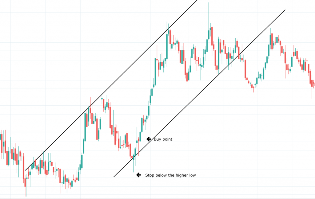 Below is an example of where a stop loss could be placed. In this case below a higher low.