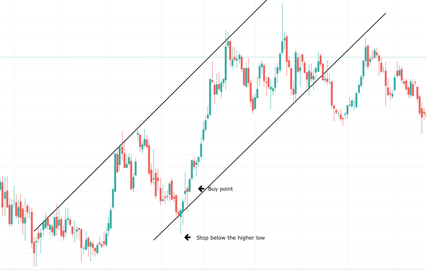 Below is an example of where a stop loss could be placed. In this case below a higher low.