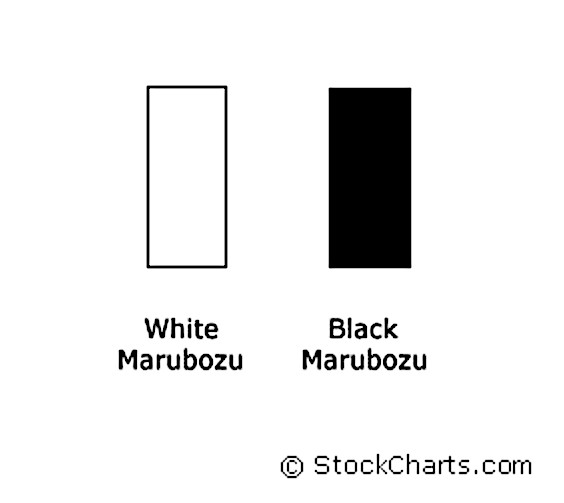 Earlier in this article I talked about candles that close on their highs as signaling momentum. The correct term, of these candles, are the “Marubozu Brothers”. These candles close on their highs, which is a sign of continued movement in that same direction. In the picture below they are in the black and white style. A white marubozu candle means that buyers are in control from start to finish. While a black candle has the opposite meaning.