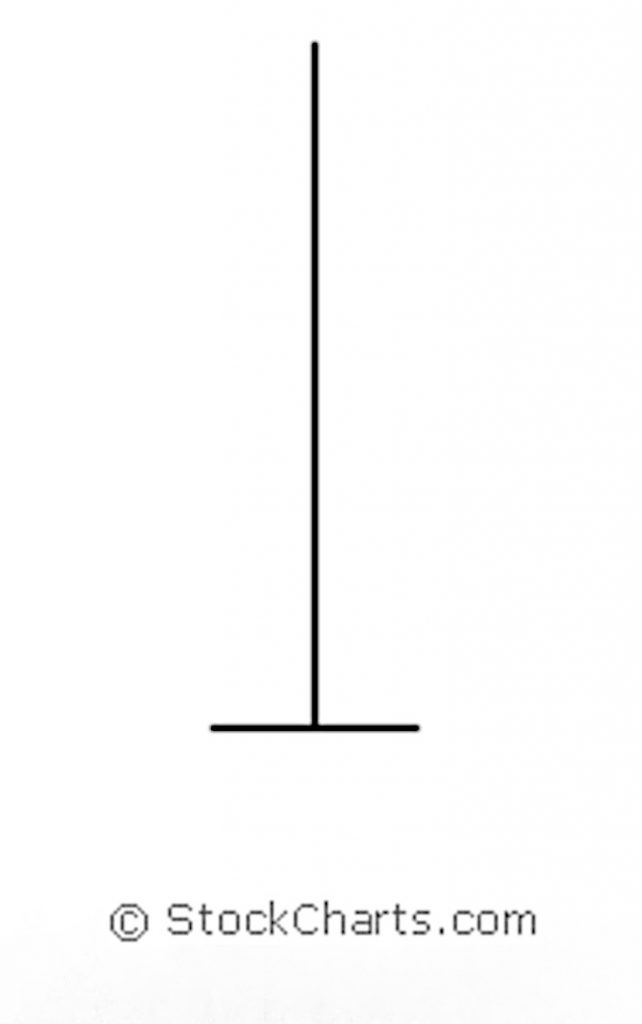 The Gravestone doji is a reversal pattern when it appears at the end of a trend. It looks like a gravestone. And it indicates a reversal if it happens at the end of a trend. The open, close and low are equally big. The high creates a long upper shadow, which makes the candle look like an upside down turned T.