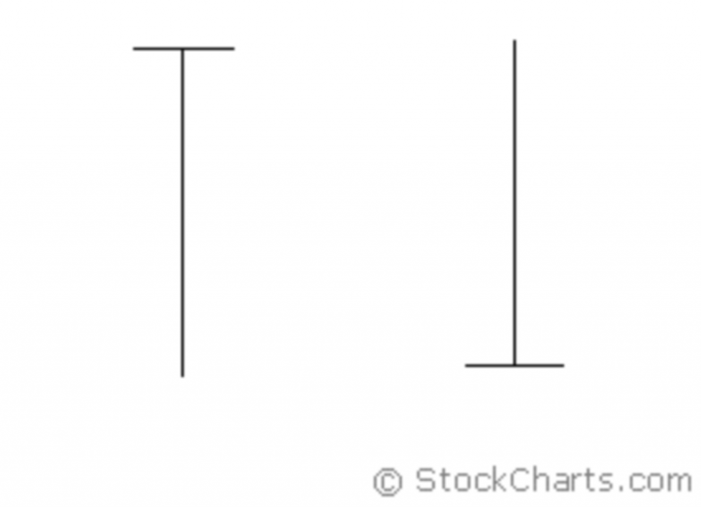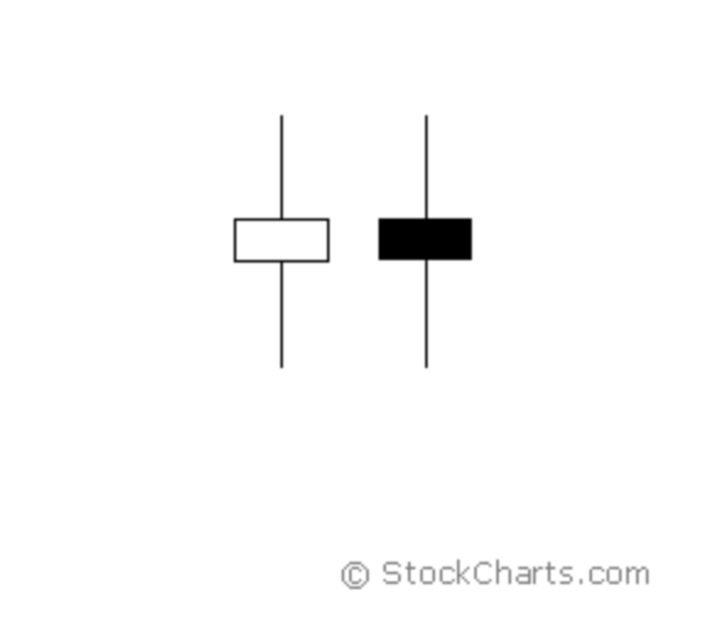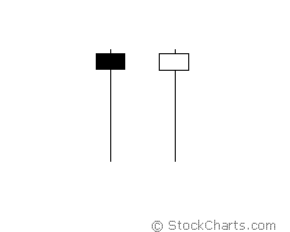 Earlier in this article I talked about candles that close on their highs as signaling momentum. The correct term, of these candles, are the “Marubozu Brothers”. These candles close on their highs, which is a sign of continued movement in that same direction. In the picture below they are in the black and white style. A white marubozu candle means that buyers are in control from start to finish. While a black candle has the opposite meaning.