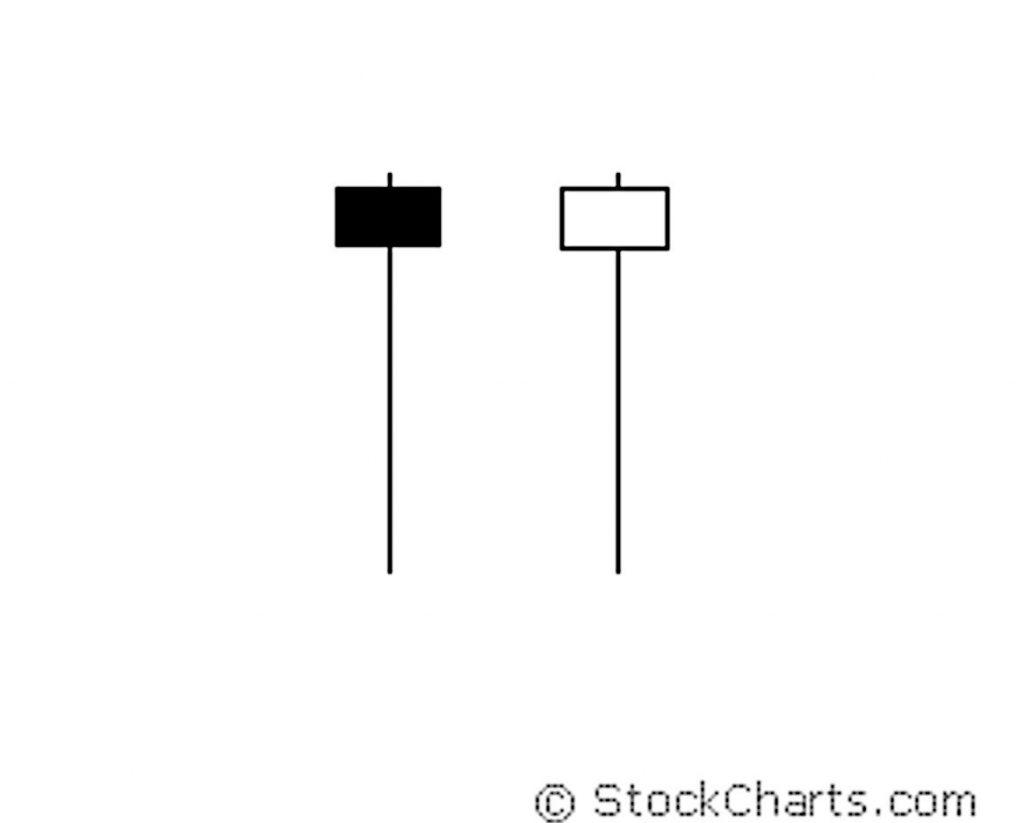 Above are two examples of “spinning tops”. They are quite similar to Dojis. Spinning tops have long upper, and lower shadows, but small real bodies. They show that both bulls and bears were active during the battle. But that it eventually ended up in a draw. These candles indicates weakness after a long advance. And strength when they appear after a long decline. They are indecision candles similar to Dojis.